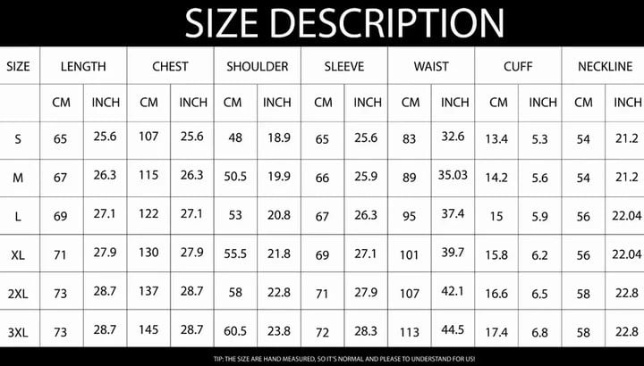 Please check the measurement chart carefully before you buy the item.