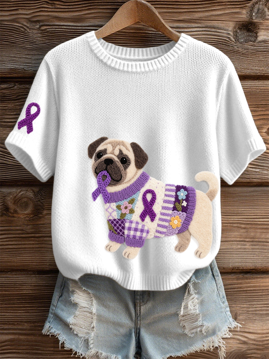 Women's Felt Art Pug Pattern Cozy Knit Top